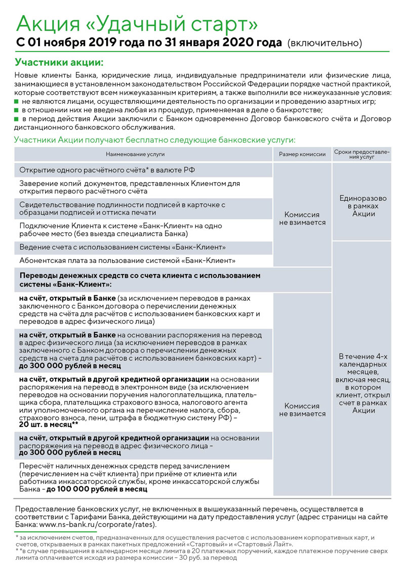 Акция действует при условии одновременного заключения договора банковского счёта и договора дистанционного обслуживания в период с 1 ноября 2019 года по 31 января 2020 года включительно.