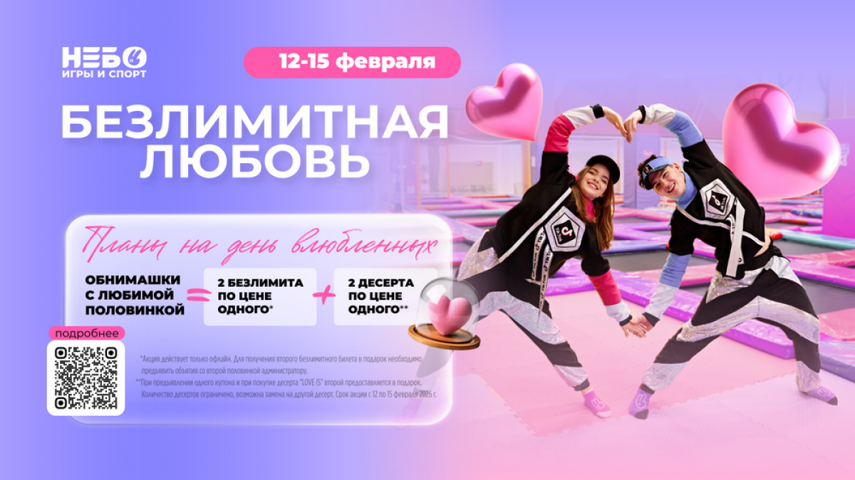 Прийти в центр «Небо», обнять любимого человека на глазах у администратора и забрать два безлимитных билета и купон на второй десерт.