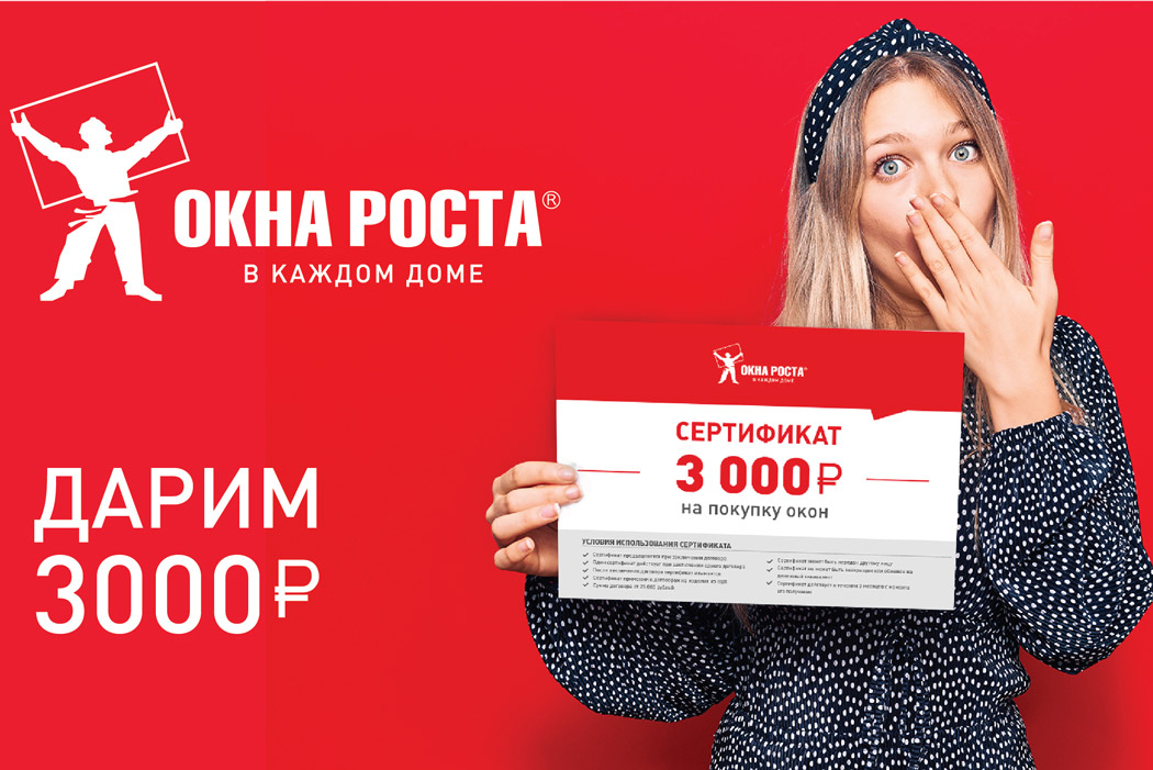 «Окна Роста» – это эргономичные и надёжные пластиковые окна ведущих мировых производителей. Это всегда качественные изделия, профессиональное обслуживание, удобные условия сотрудничества и привлекательные цены. А сейчас ещё и приятный бонус – сертификат, которым вы можете воспользоваться сами или подарить его своим близким или друзьям.